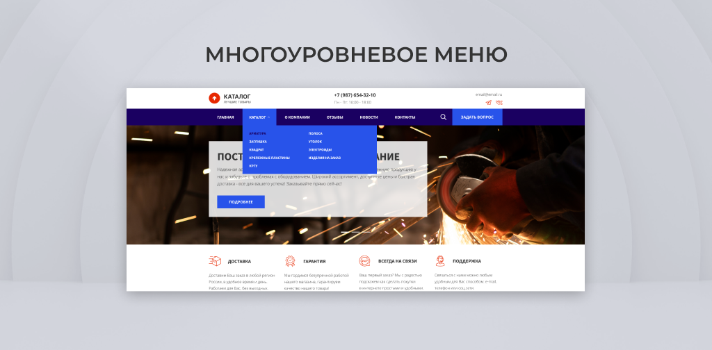 Универсальный корпоративный сайт с каталогом услуг. Современный сайт со всем нужным функционалом идеально подойдет для компании, работающей в сфере промышленности: