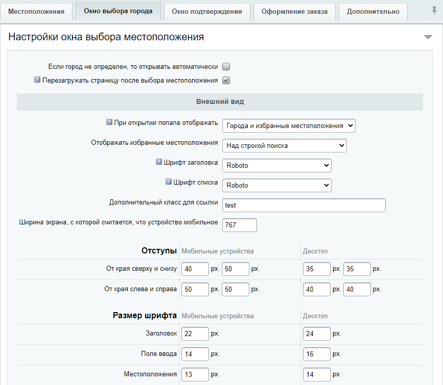 Для редакций «Бизнес» и «Малый бизнес» список населенных пунктов берется из Местоположений модуля «Интернет-магазин». На младших редакциях по-умолчанию выводится список городов для России и Украины из внутренней базы решения.