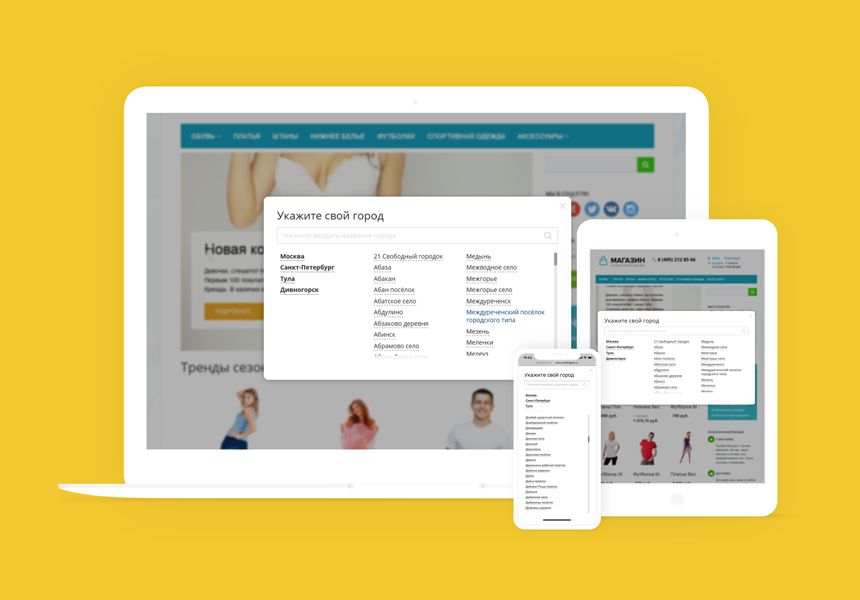 — адаптивное окно выбора городов с широкими настройками логики работы;