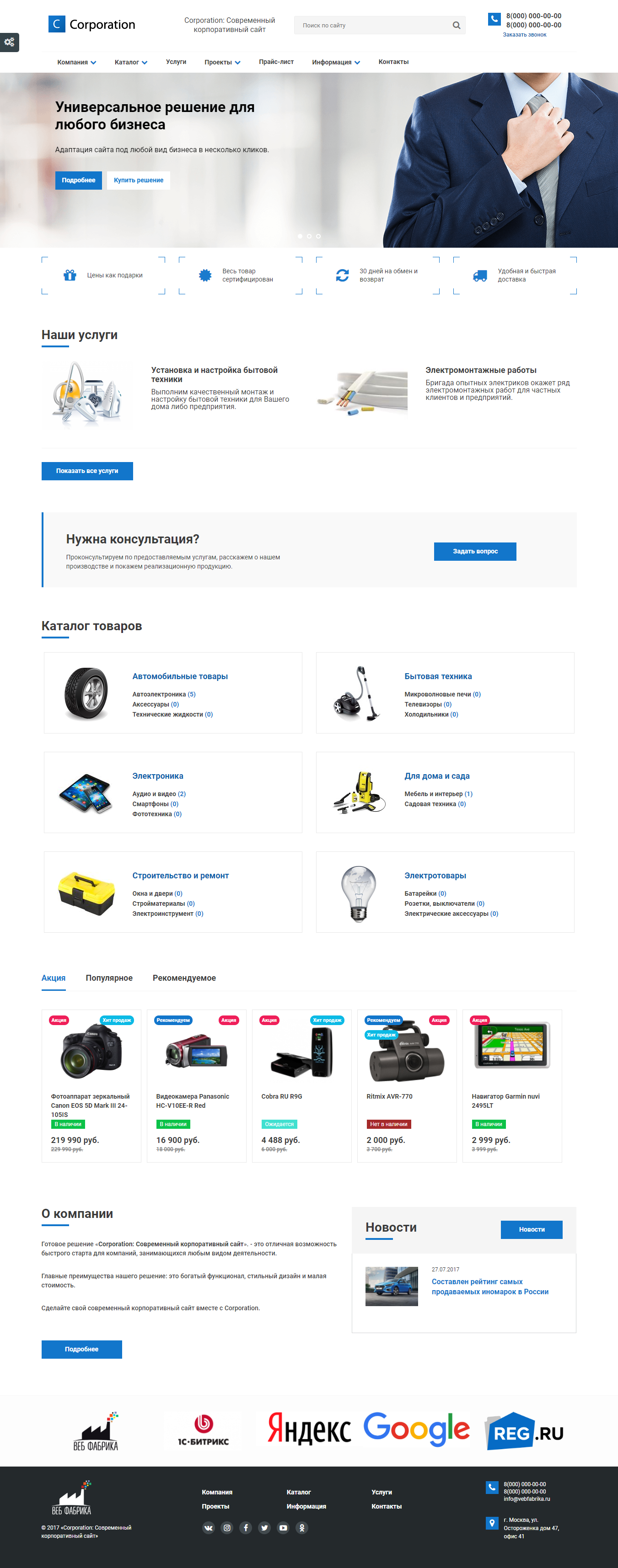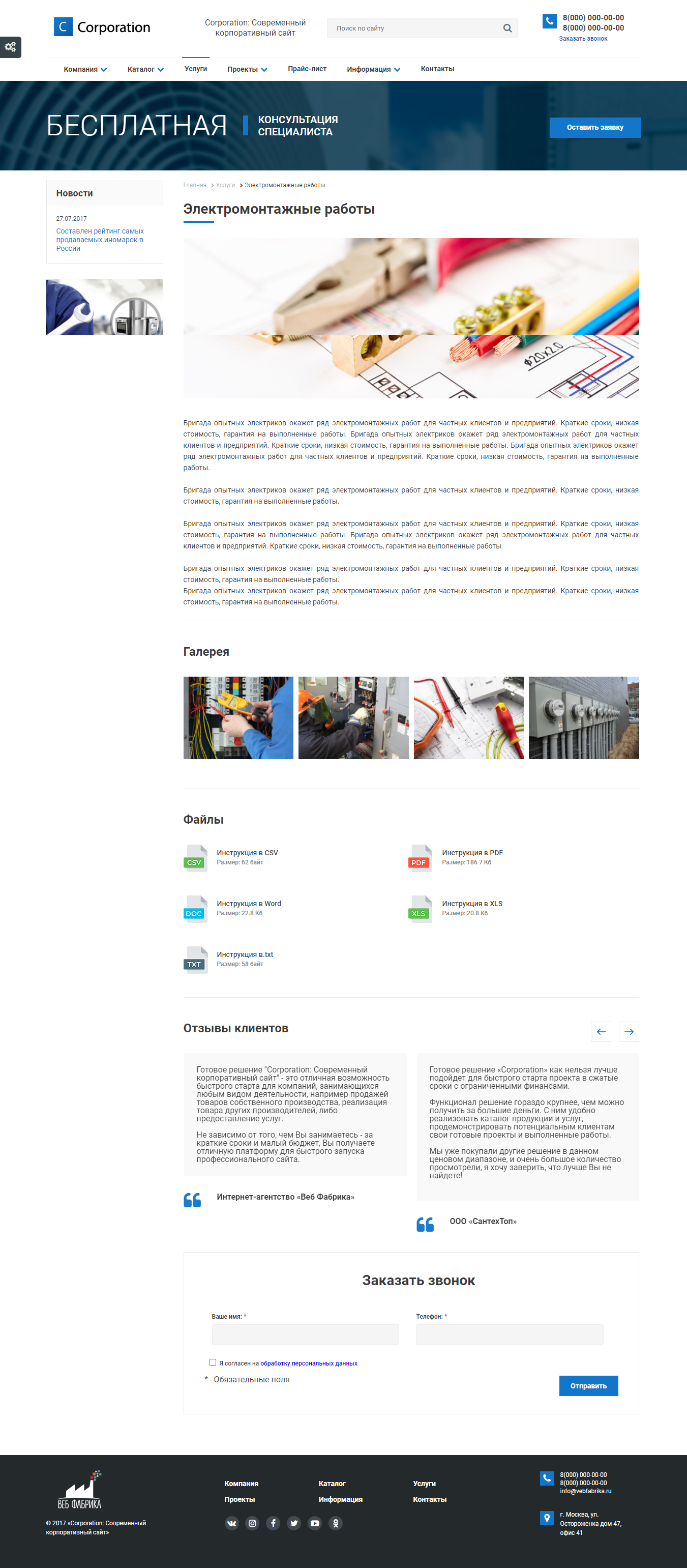 Внимание!!! Готовое решение не работает с модулем торгового каталога и интернет-магазина в редакциях Малый Бизнес и Бизнес, потому что является корпоративным сайтом с собственной корзиной.