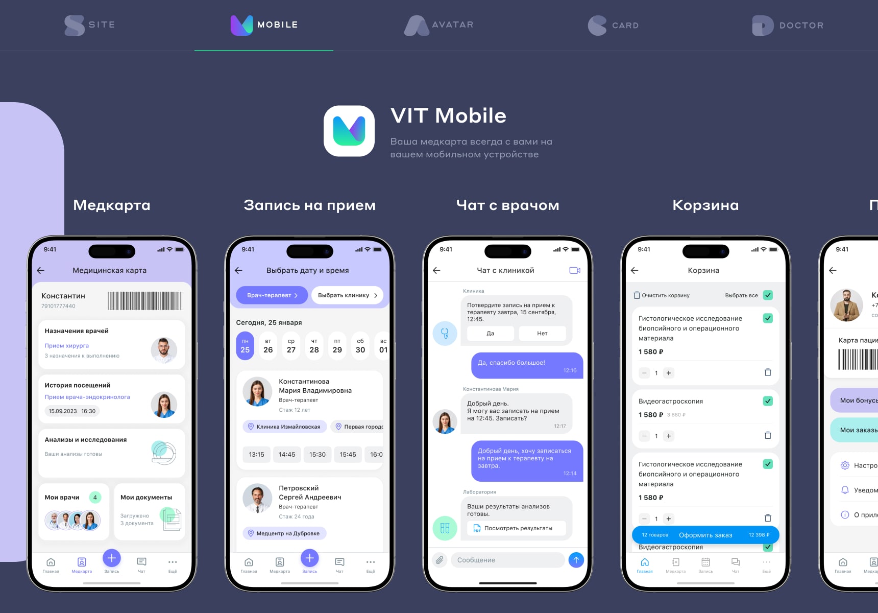 кабинеты пациента и врача, мобильное приложение клиники и цифровой