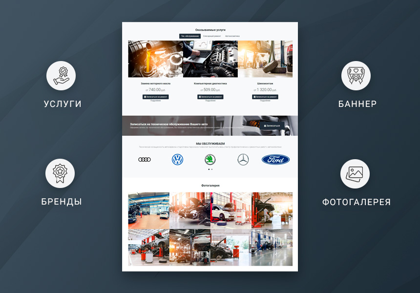 Готовое решение для быстрого запуска сайта для автосервиса или автомастерской.