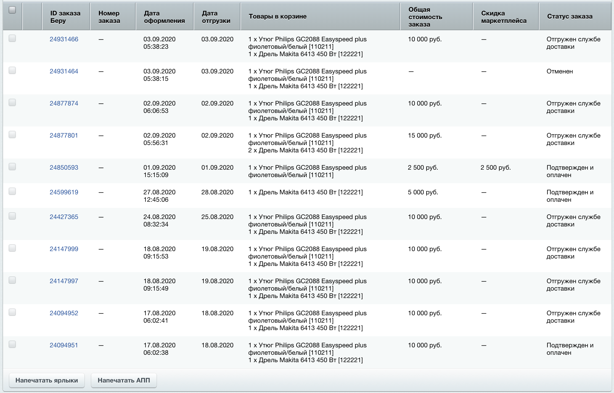 3. Дальнейшую обработку заказа можно проводить в 1С-Битрикс, личном кабинете или приложениях Маркета.